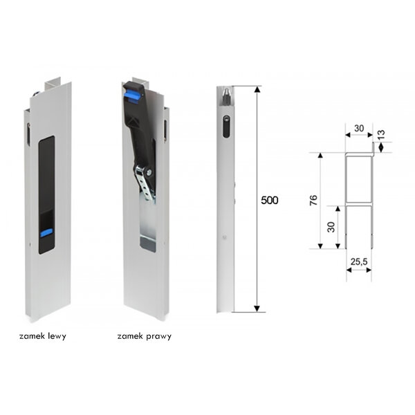 Zamek 500mm burty aluminiowej BM lekki lewy w z noskiem