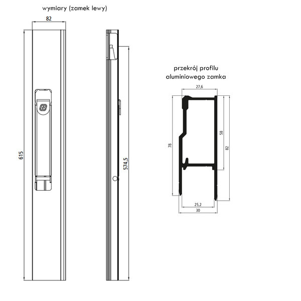 Zamek 815mm burty aluminiowej SU anodowany lewy